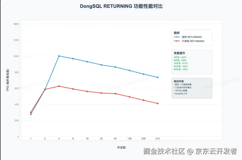 ▶︎ 性能提升效果:经测试验证,RETURNING子句在不同场景下都能带来显著的性能提升: