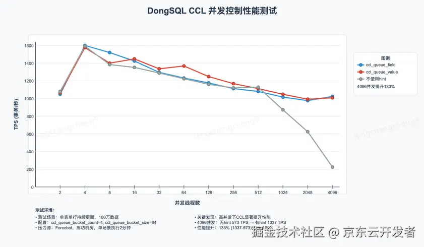•秒杀场景优化:在4096并发下,使用CCL限流后TPS从573提升至1337,性能提升133%