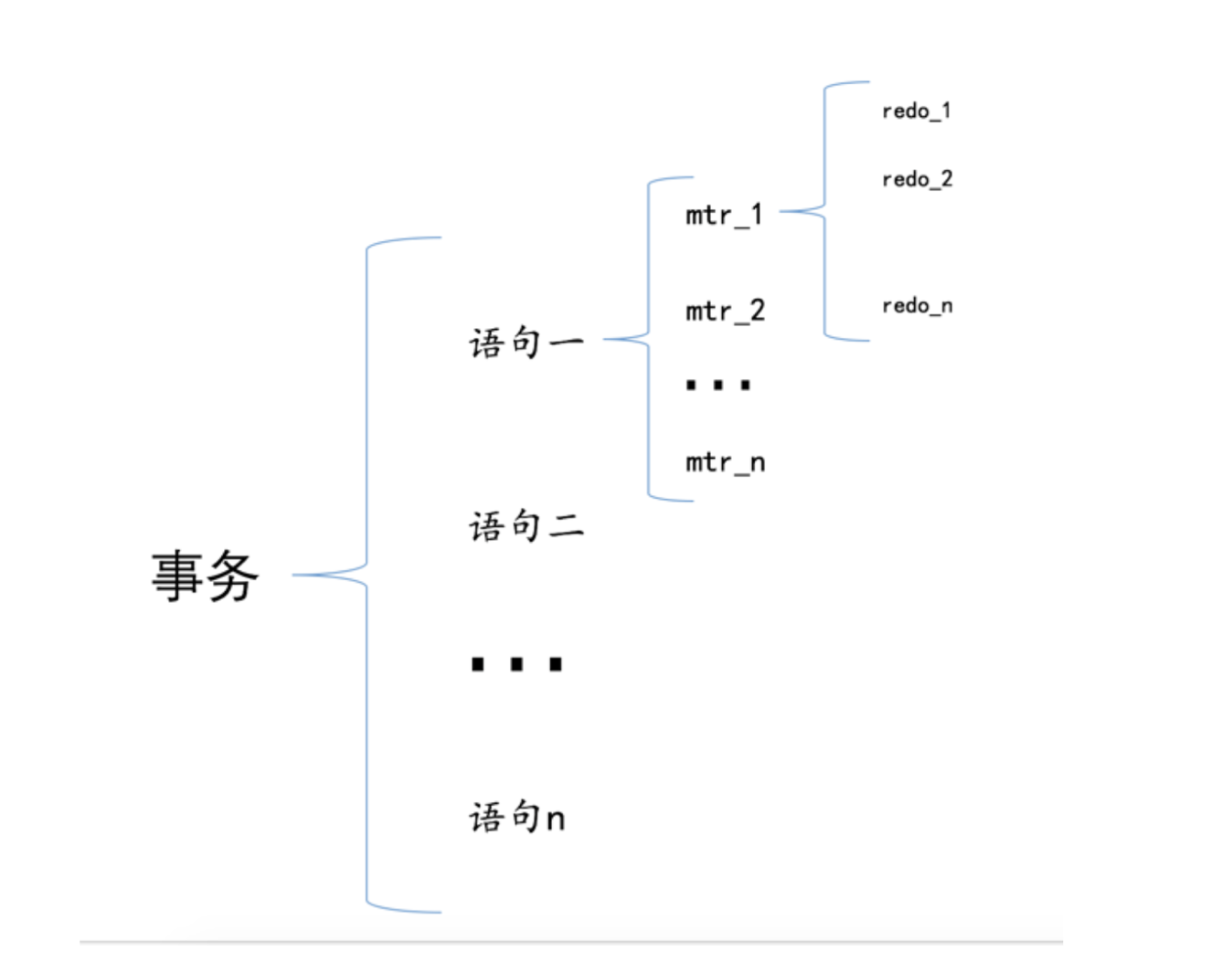 一个事务可以包含很多个语句,一个语句实际上就是很多mtr组成的,mtr又包含redo日志: