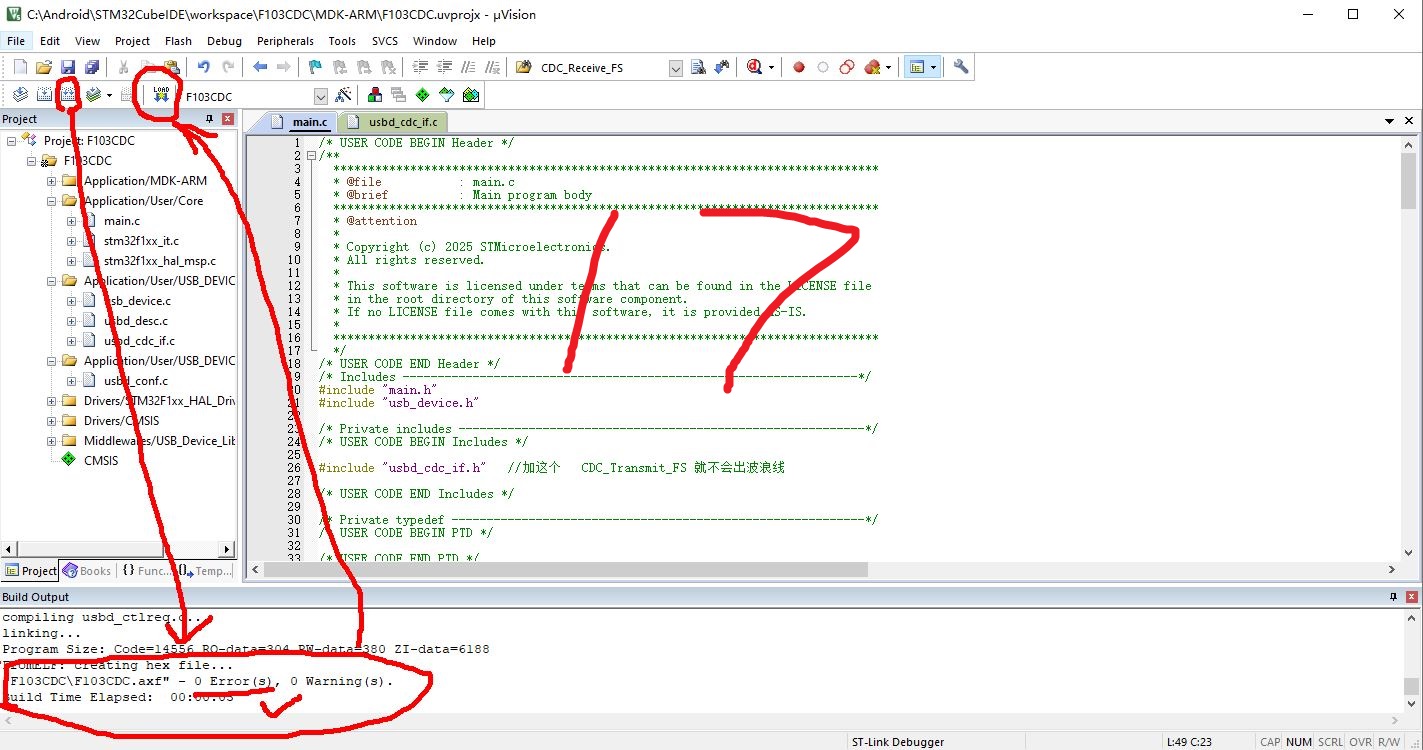 #include "usbd_cdc_if.h" //加这个 CDC_Transmit_FS 就不会出波浪线