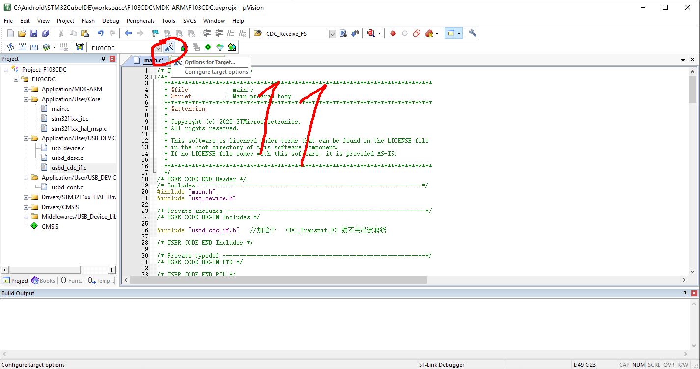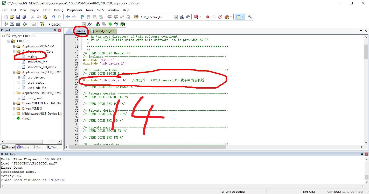 //在mian.c 的前面加 #include "usbd_cdc_if.h"