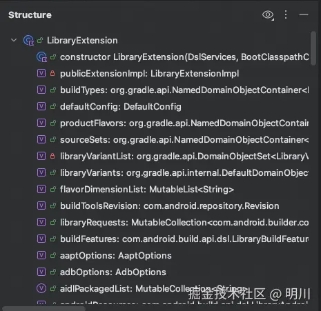 看Gradle源码,这里是委托给了 LibraryExtension ,所以compileSdk 字段就是 LibraryExtension 中的一个属性