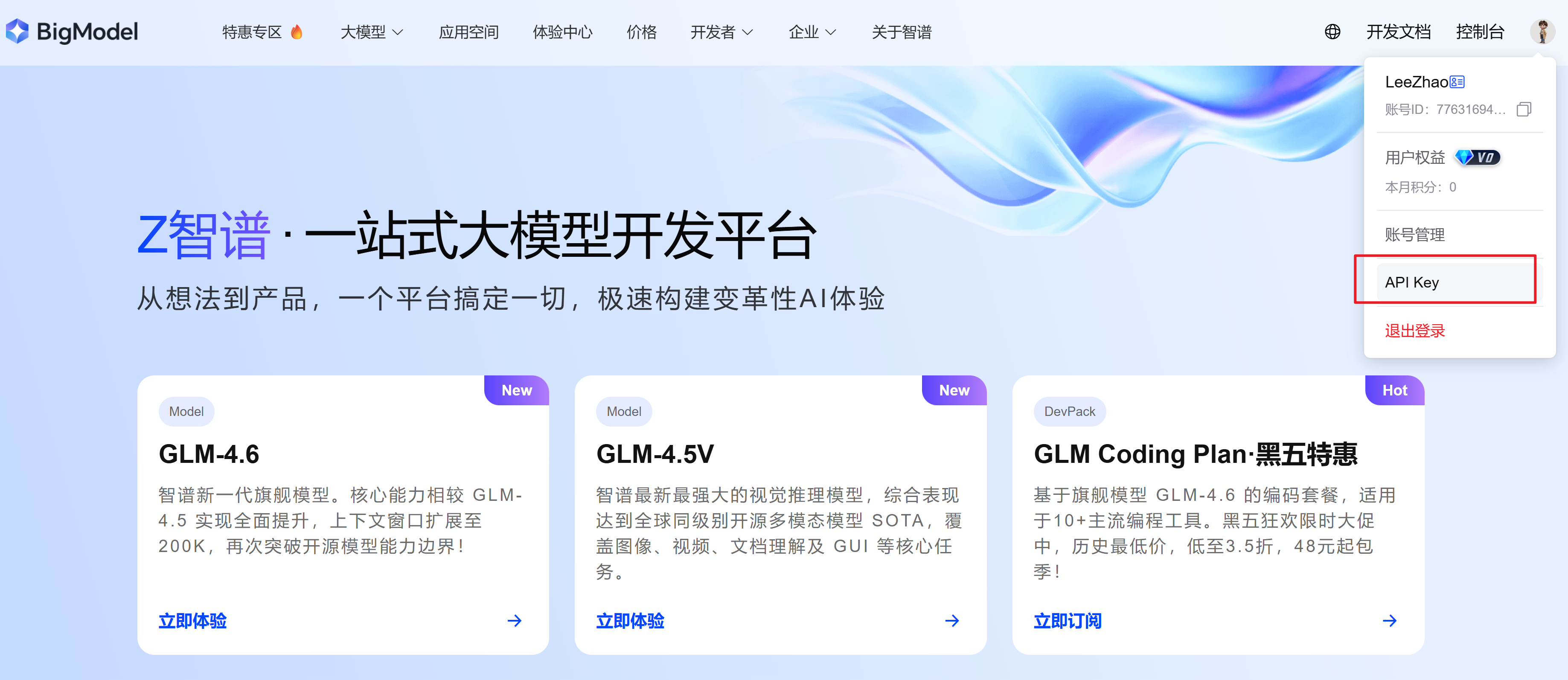 - [1 智谱API Key获取](#1 智谱API Key获取)