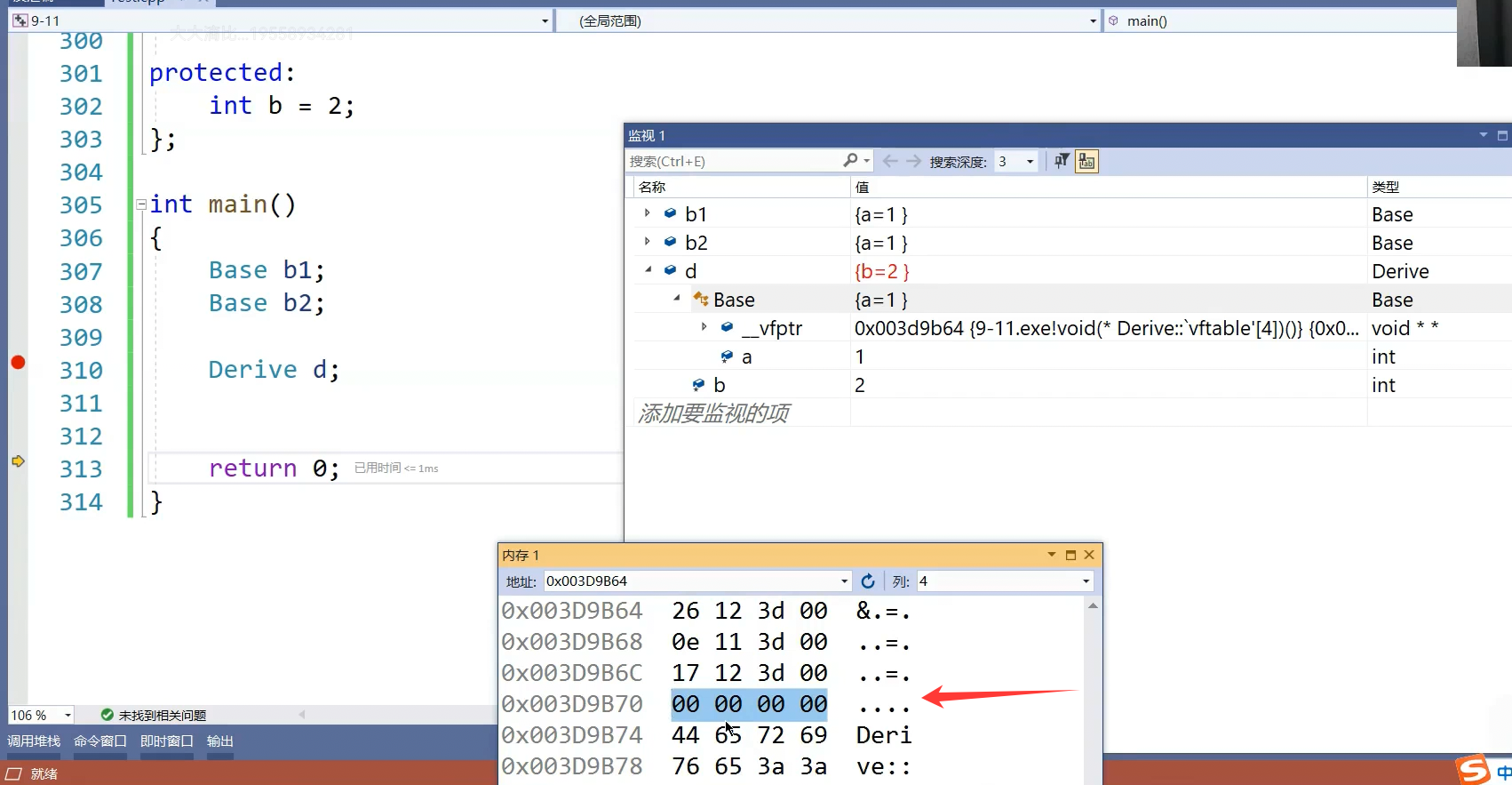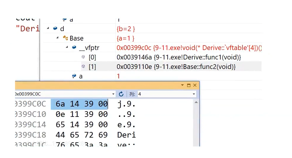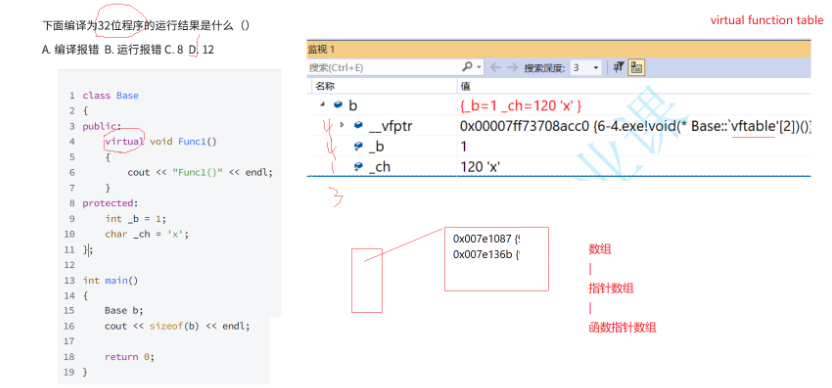 这是虚函数表指针,这是个指针指向这张表也就是指向这个数组。