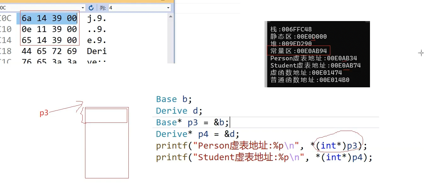 printf("Student虚表地址:%p\n", *(int*)p4);