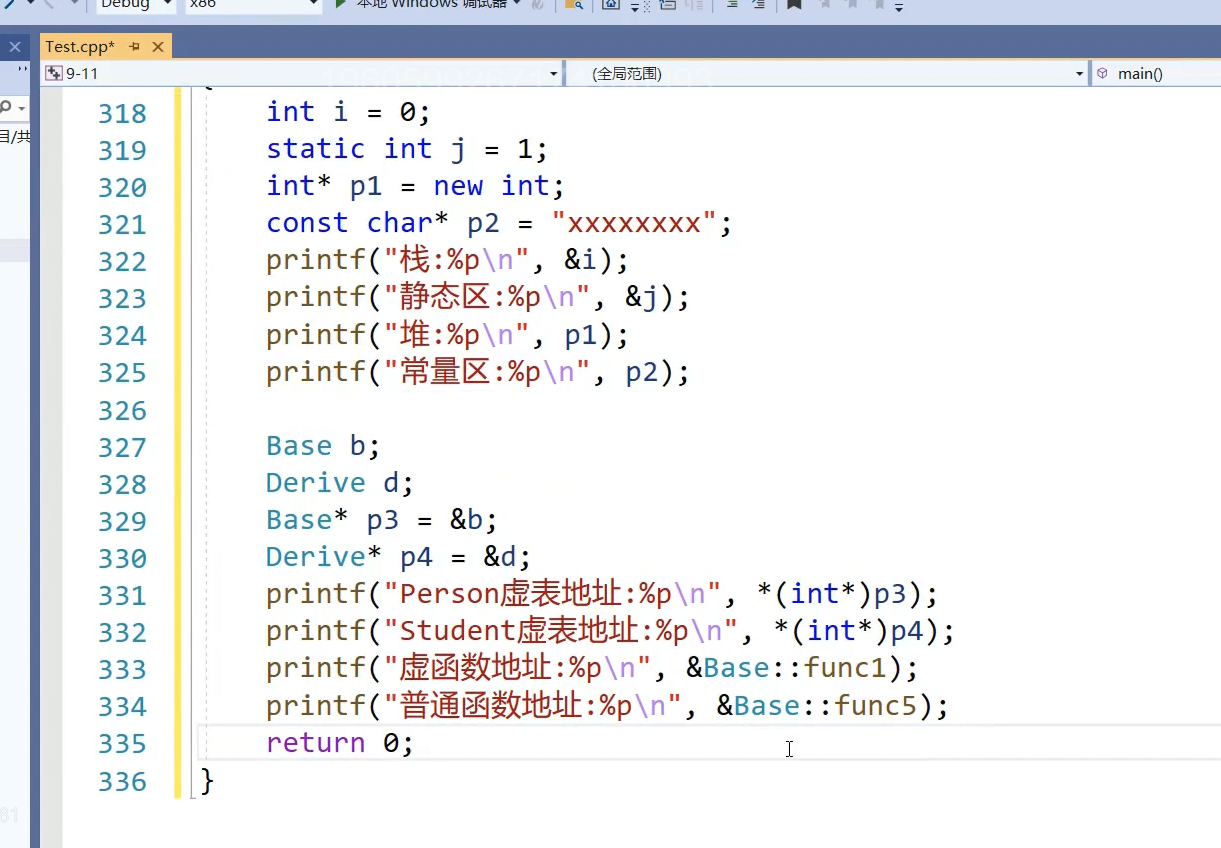 打印虚函数和普通函数就,是为了证明,他两在一个区域。只是虚函数地址又放到了虚表里面,成员函数取地址前面加&。