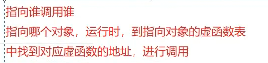 怎么样能指向谁调用谁,编译器检查语法也是看满足多态吗,满足,编译这段指令时候就把这段指令变成 到指针指向这个对象的里面的虚表去找,