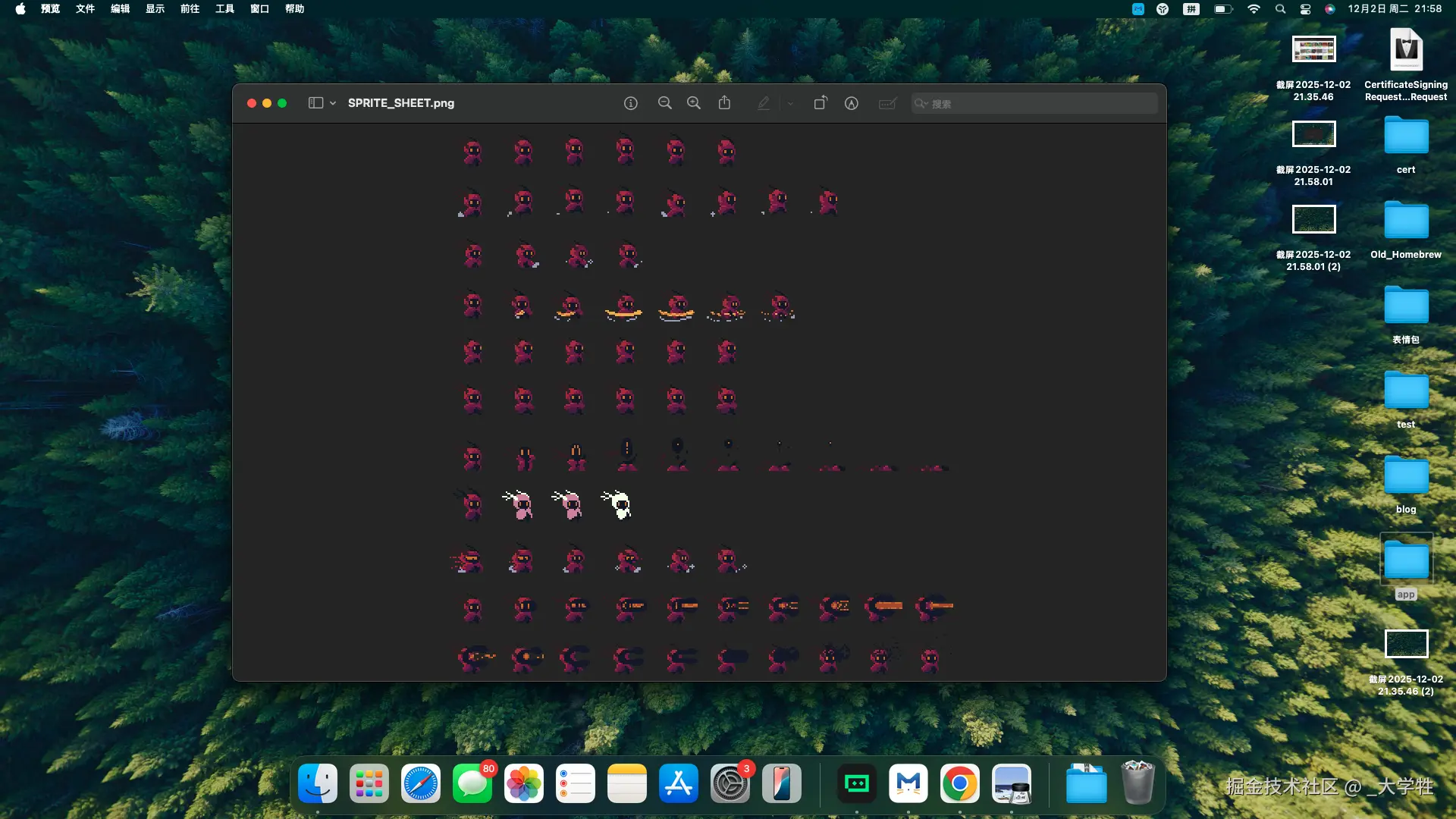 它将角色的所有动作帧、特效图块等合并到一张大图中,通过 切图 + 帧序播放 实现动画。