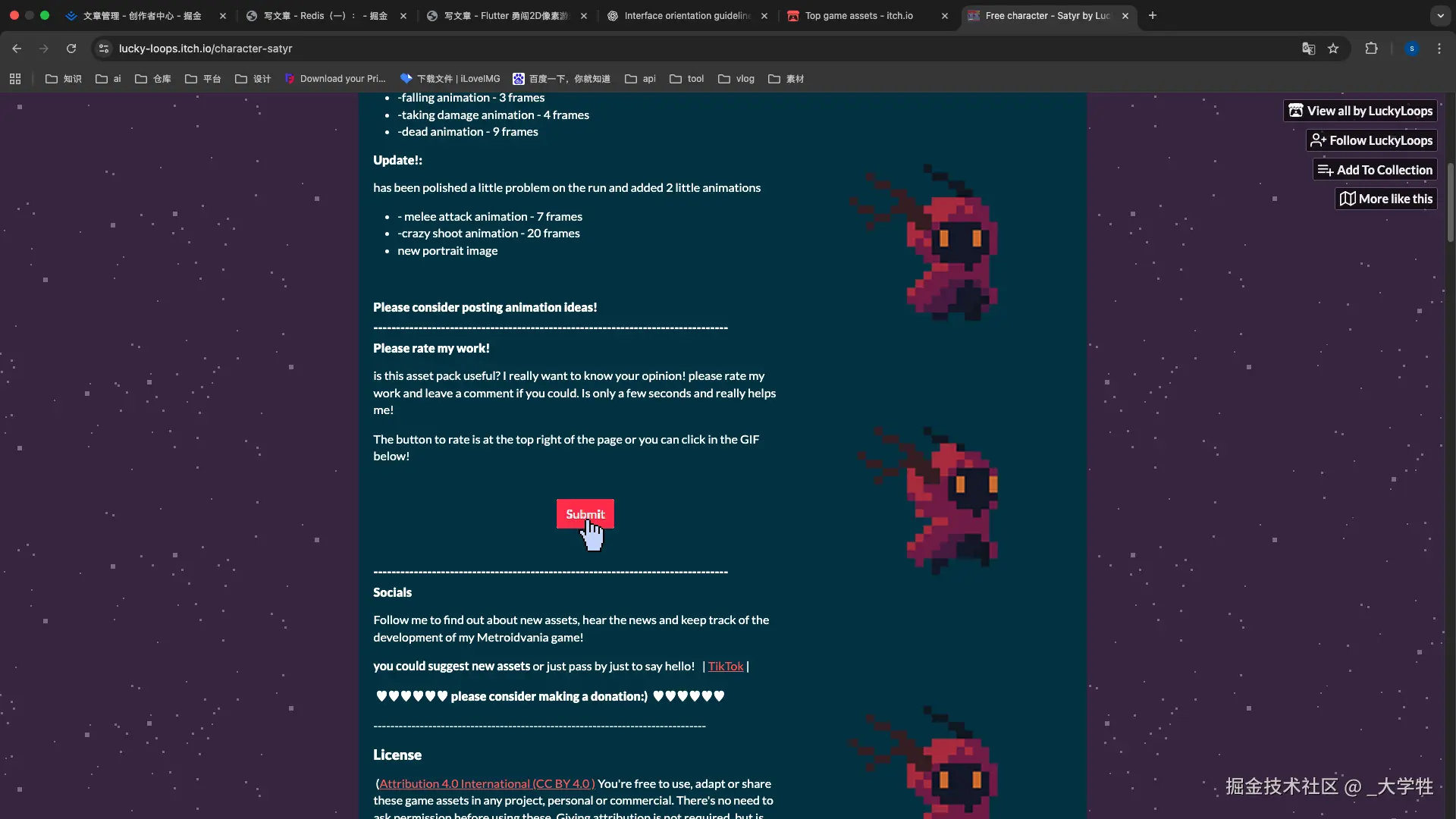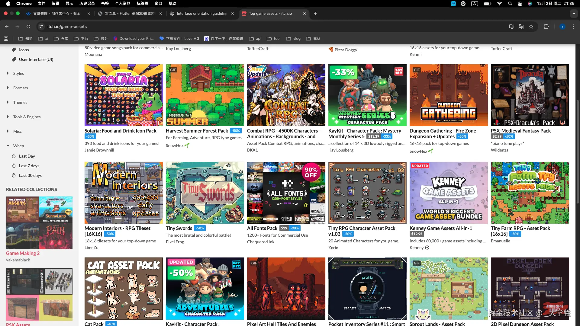 itch.io 是一个开放的独立游戏发布平台,同时也是开发者获取游戏素材的重要来源。平台上有大量由创作者上传的 像素素材、UI、地图瓦片、音效、背景音乐、角色动画、特效包 等资源,支持免费、付费或"随心付" 下载。开发者可以快速获取美术与音频资产,用于原型制作或正式项目。