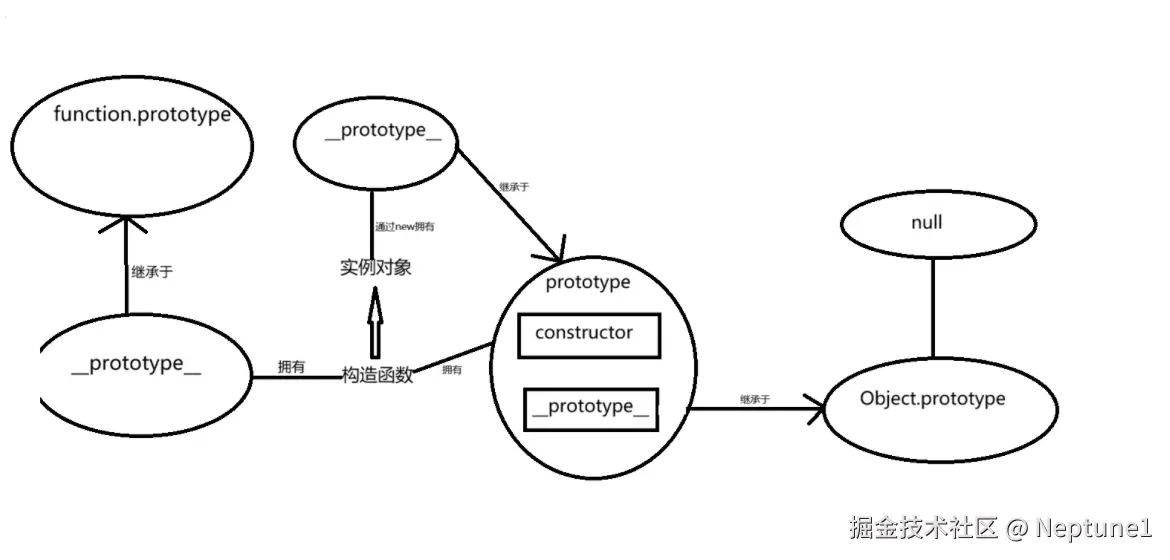 观察下图,总结了prototype,__prototype__,constructor三者的关系,可以更好的理解什么是原型