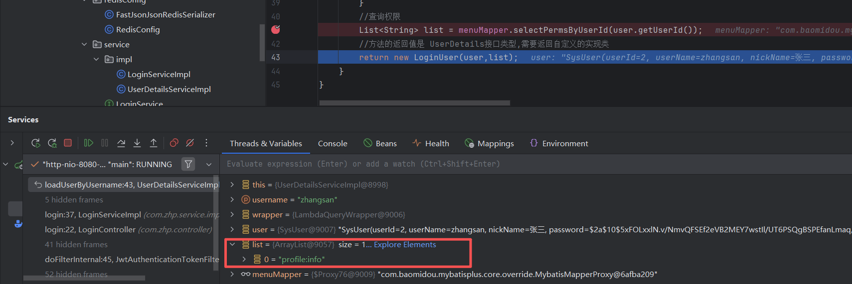 // 该方法会去调用UserDetailsServiceImpl.loadUserByUsername