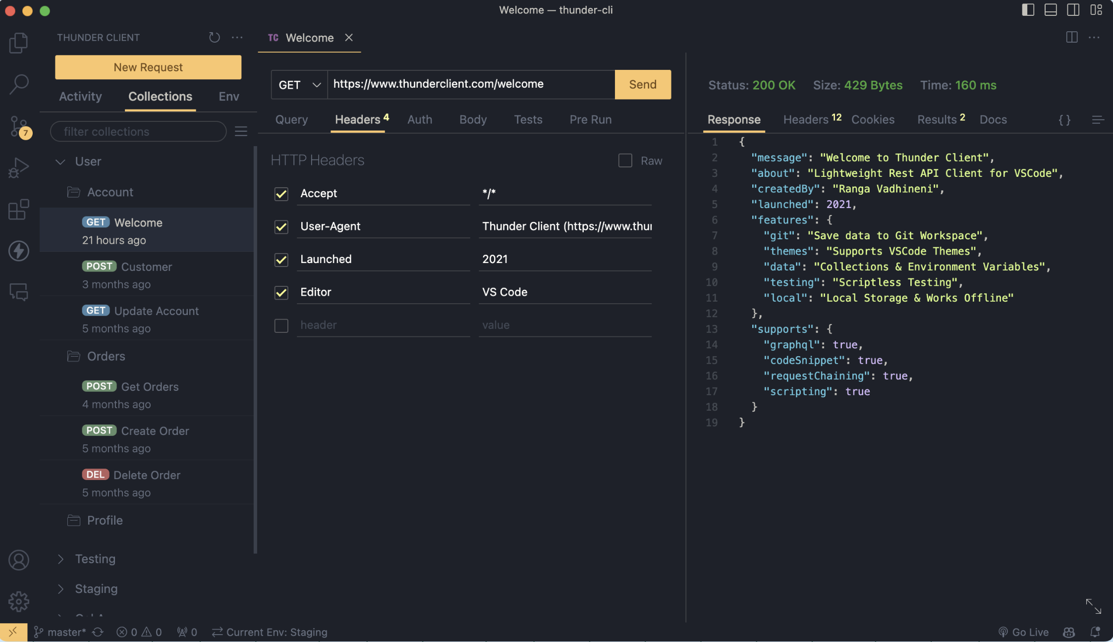 Thunder Client 是一款轻量级的 REST API 客户端工具,作为 Visual Studio Code(VS Code)的扩展插件运行。它专为开发者设计,支持快速测试和调试 HTTP 请求,无需离开代码编辑器环境。