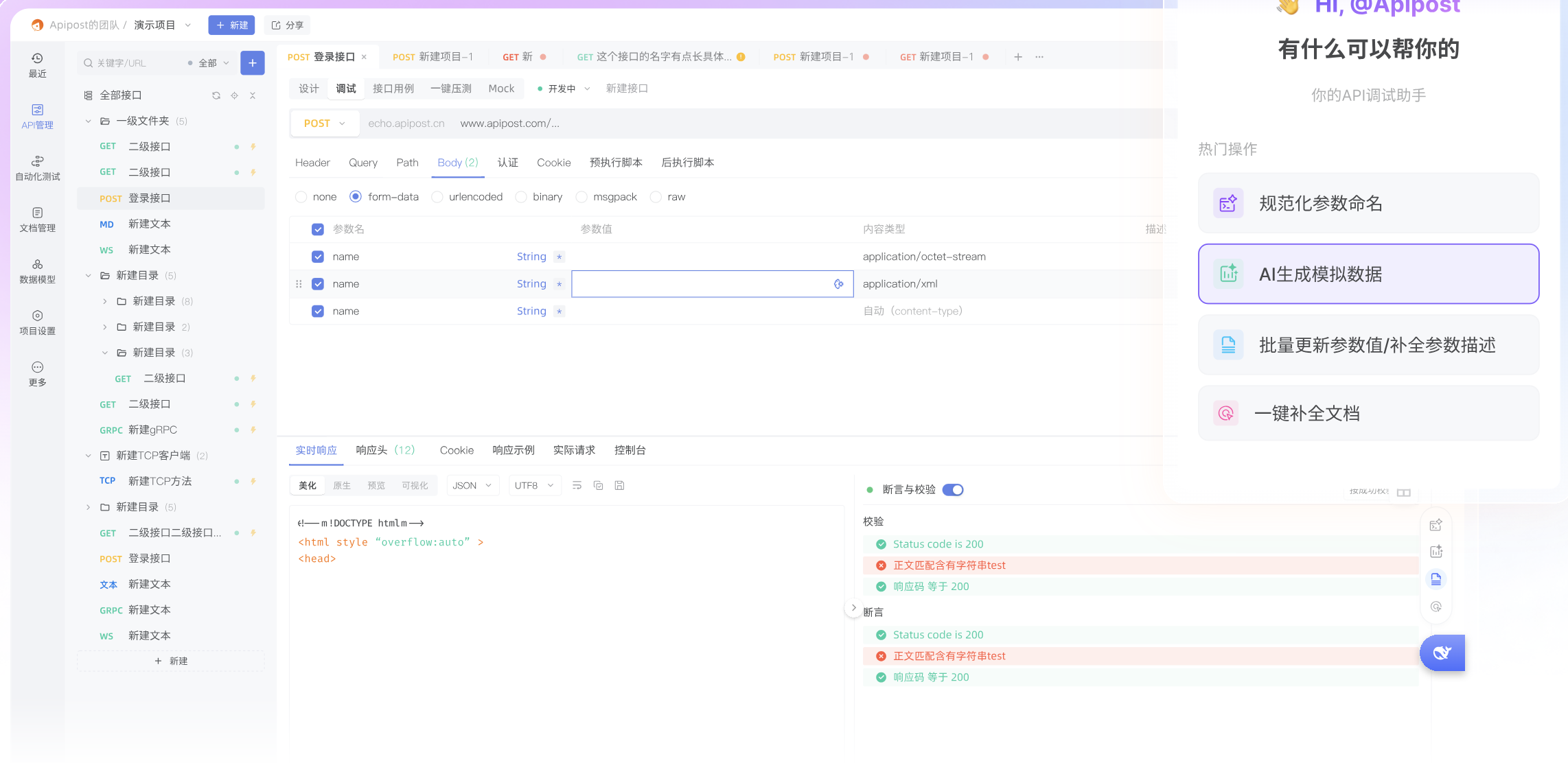 Apipost是一款专注于API开发、测试和协作的工具,旨在帮助开发团队高效管理API生命周期。其核心功能包括API设计、调试、自动化测试及文档生成,支持多人协作与云端同步。