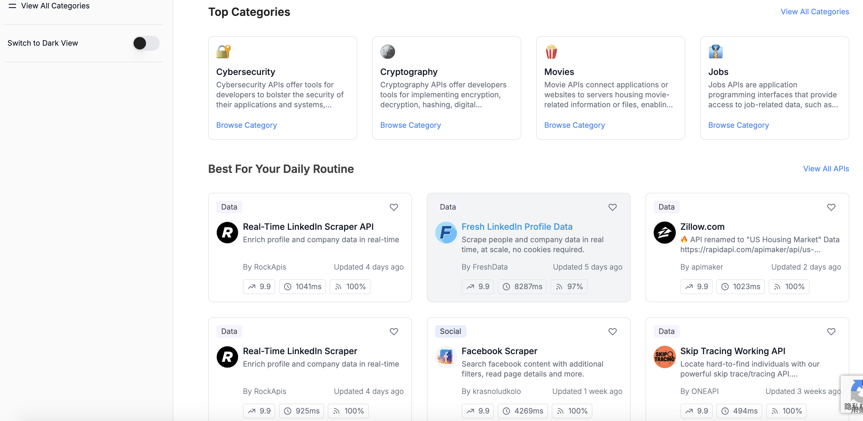 RapidAPI是一个全球领先的API(应用程序编程接口)市场和管理平台,允许开发者发现、测试、连接和管理数千个第三方API服务。其核心功能包括API聚合、统一访问接口、监控和分析工具,简化了API集成流程。