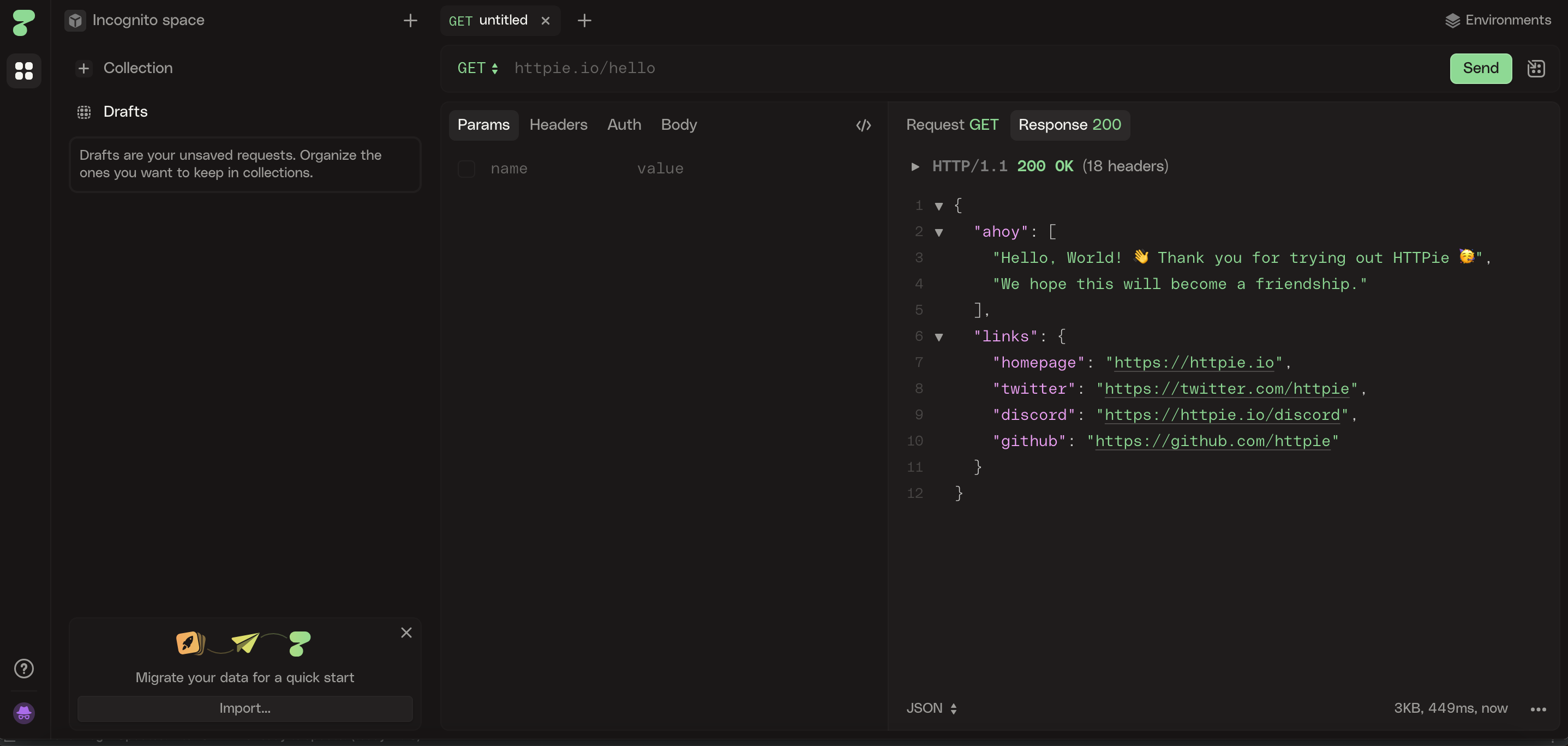 Hoppscotch(原名 Postwoman)是一个开源的 API 开发工具,提供轻量级、快速的接口测试和调试功能。直接使用浏览器可以直接进行API调用。