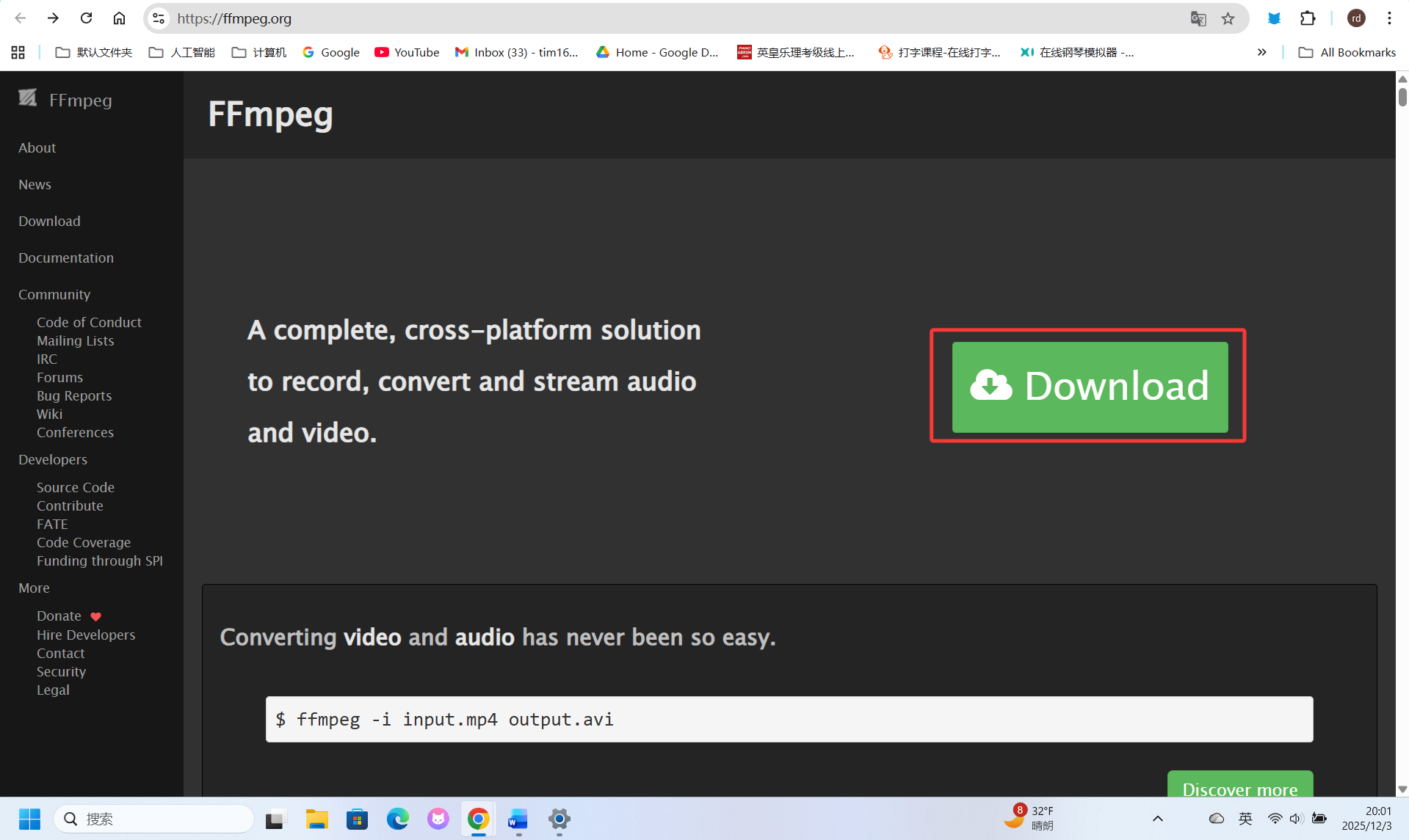 什么是FFmpeg?FFmpeg是一个完整的、跨平台的解决方案,用于录制、转换和流式传输音频和视频。它包含了libavcodec ------一个领先的音视频编解码库,以及libavformat------一个多媒体容器格式的复用和解复用库。