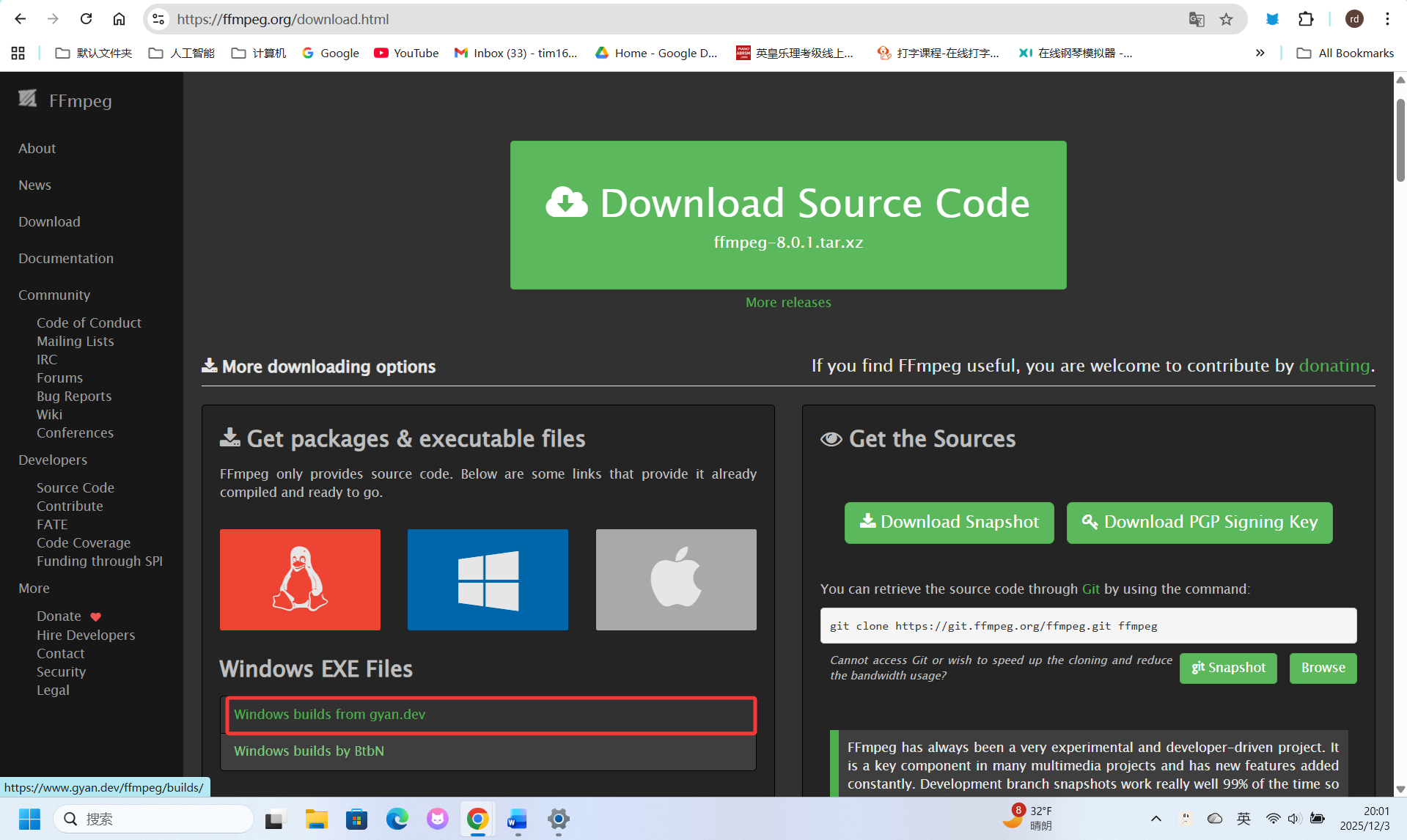 git clone https://git.ffmpeg.org/ffmpeg.git ffmpeg