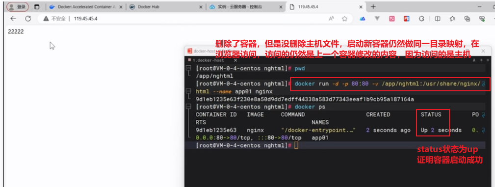 删除执行-v命令后的容器再重启一个nginx新容器,浏览器再访问: