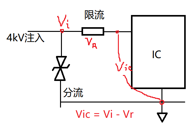 对IC造成损伤的不是绝对电压,而是加在IC两端的相对电压。1. 分流,2.限流