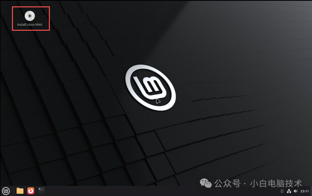 到这个界面,其实你是可以试用一下的。因为这里是安装教程,所以直接双击桌面上的Install Linux Mint,进入安装流程。