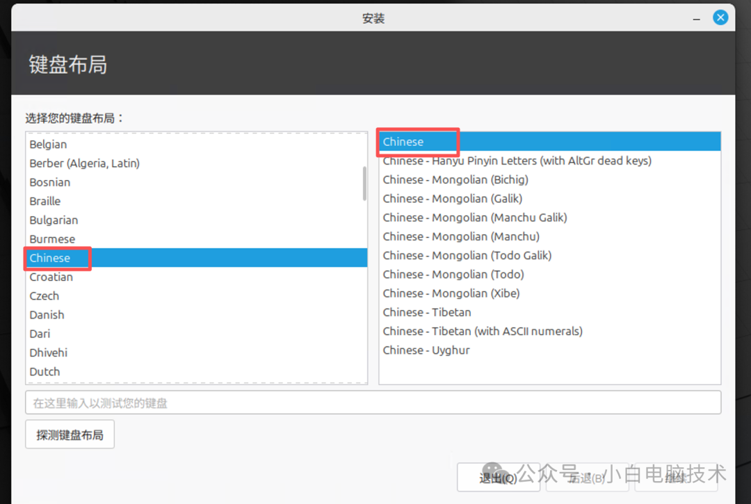 键盘布局默认【Chinese】即可