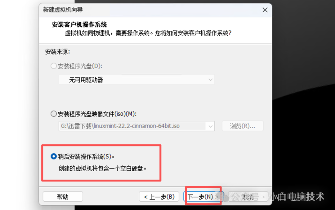 选择【稍后安装操作系统】