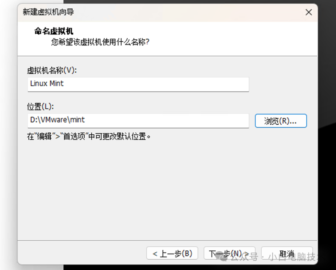 接着给个虚拟机的名称,还有设置存储路径。(建议位置不要存放在C盘)