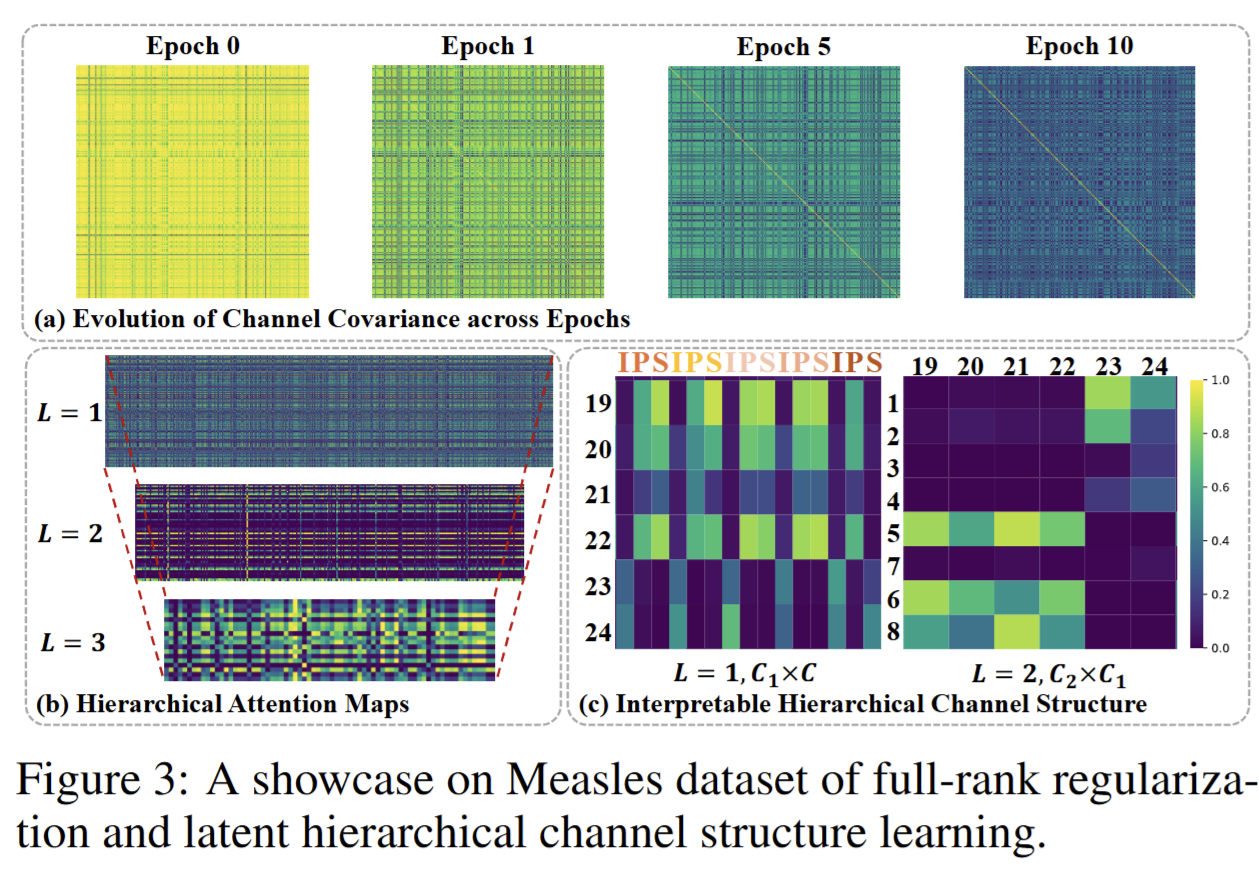 - Full-Rank Regularization:在训练目标中加入通道协方差矩阵的负对数行列式,强制隐表示行满秩,解除高度相关通道的线性冗余,增强层级结构的可解释性与泛化性。