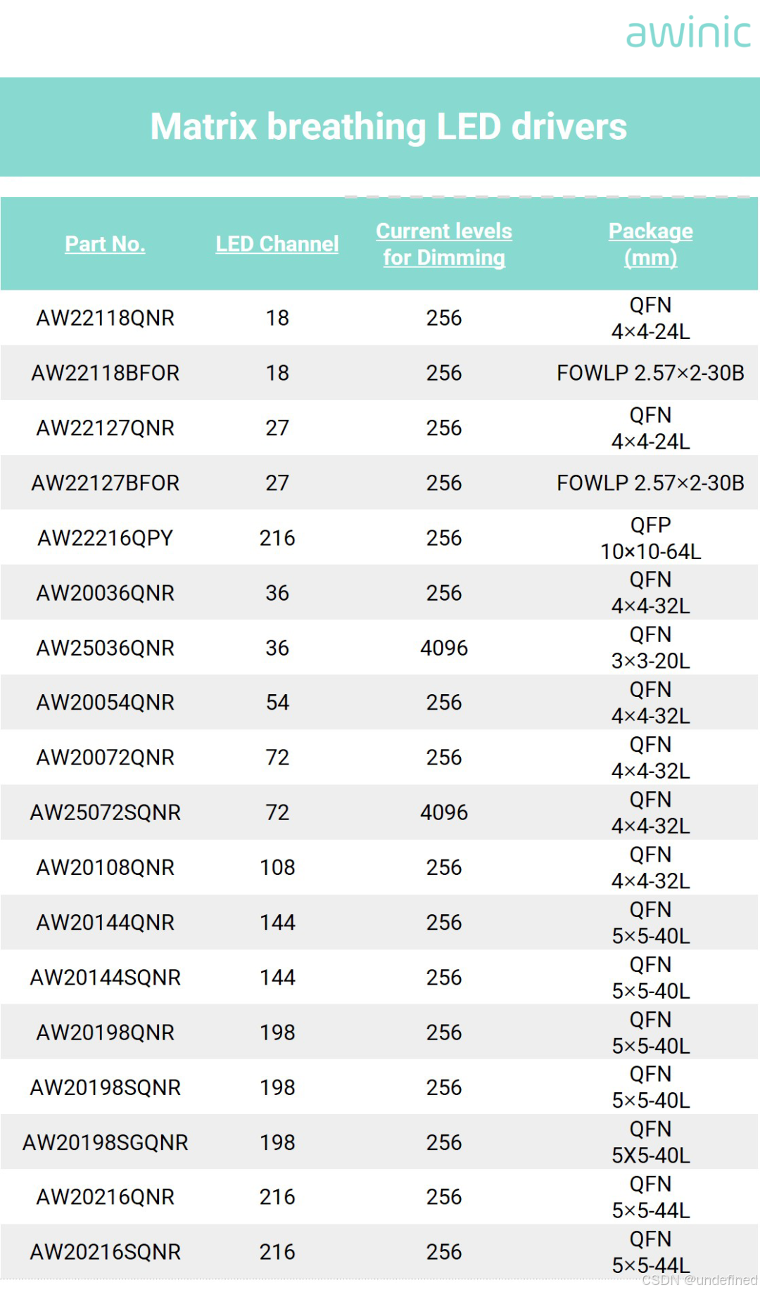 表1 艾为矩阵型呼吸灯驱动选型表