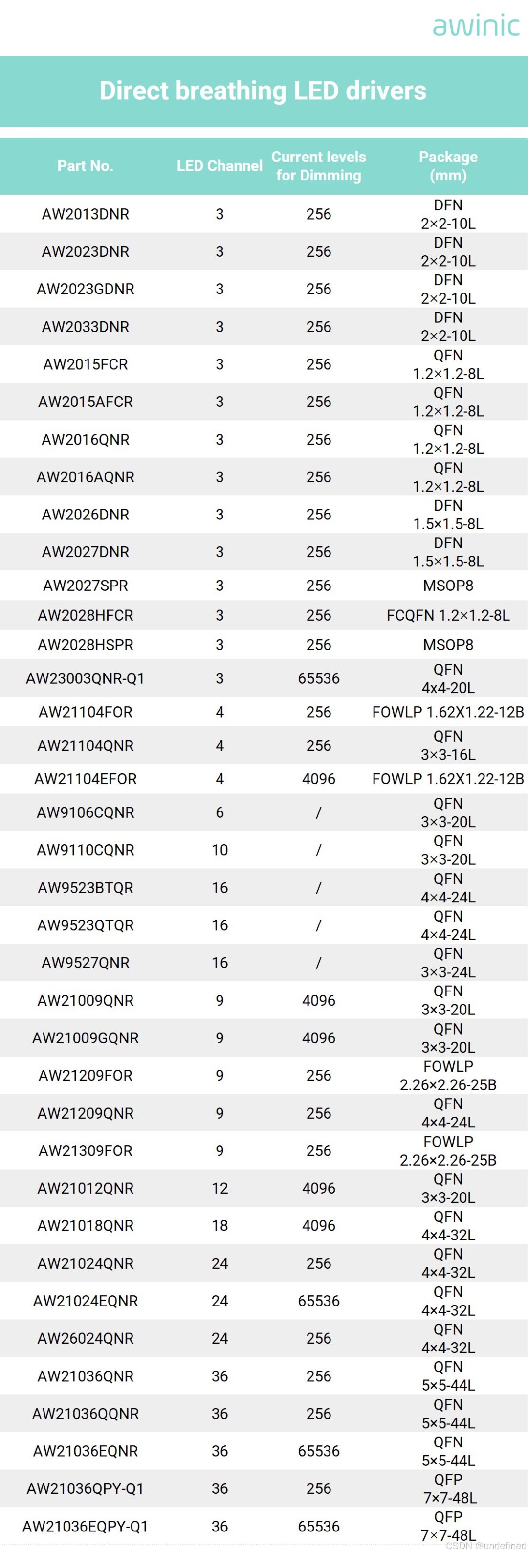 艾为呼吸灯驱动选型表