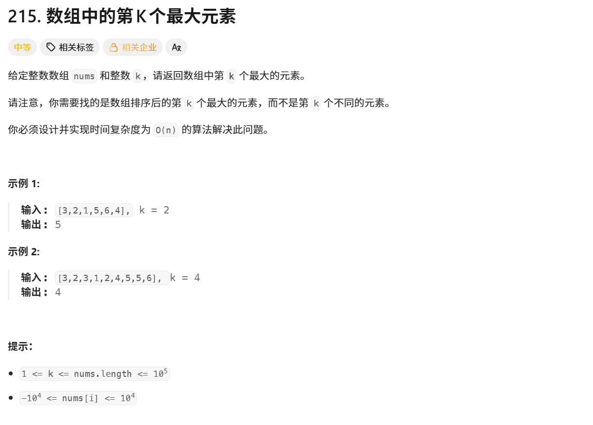 LeetCode 215. Kth Largest Element in an Array 是堆排序的经典应用场景。