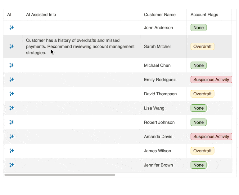 KendoReact智能网格可以帮助您创建最终用户可以使用自然语言或语音提示探索和交互数据的体验,用户可以输入或说出诸如"只显示收入超过10,000的行"或"按地区分组并按日期排序"之类的查询,网格会立即应用更改。专用的AI Assistant列支持行级分析,来生成摘要、提取见解或执行快速转换。您可以在提供精致的AI数据体验的同时保持控制,使最终用户的数据交互更快、更智能、更直观。