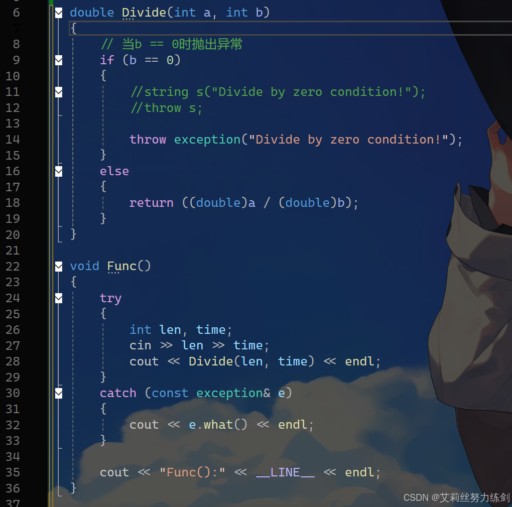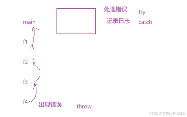 程序出现问题时,我们通过抛出(throw)一个对象来引发一个异常,该对象的类型以及当前的调用链决定了应该由哪个catch的处理代码来处理该异常。