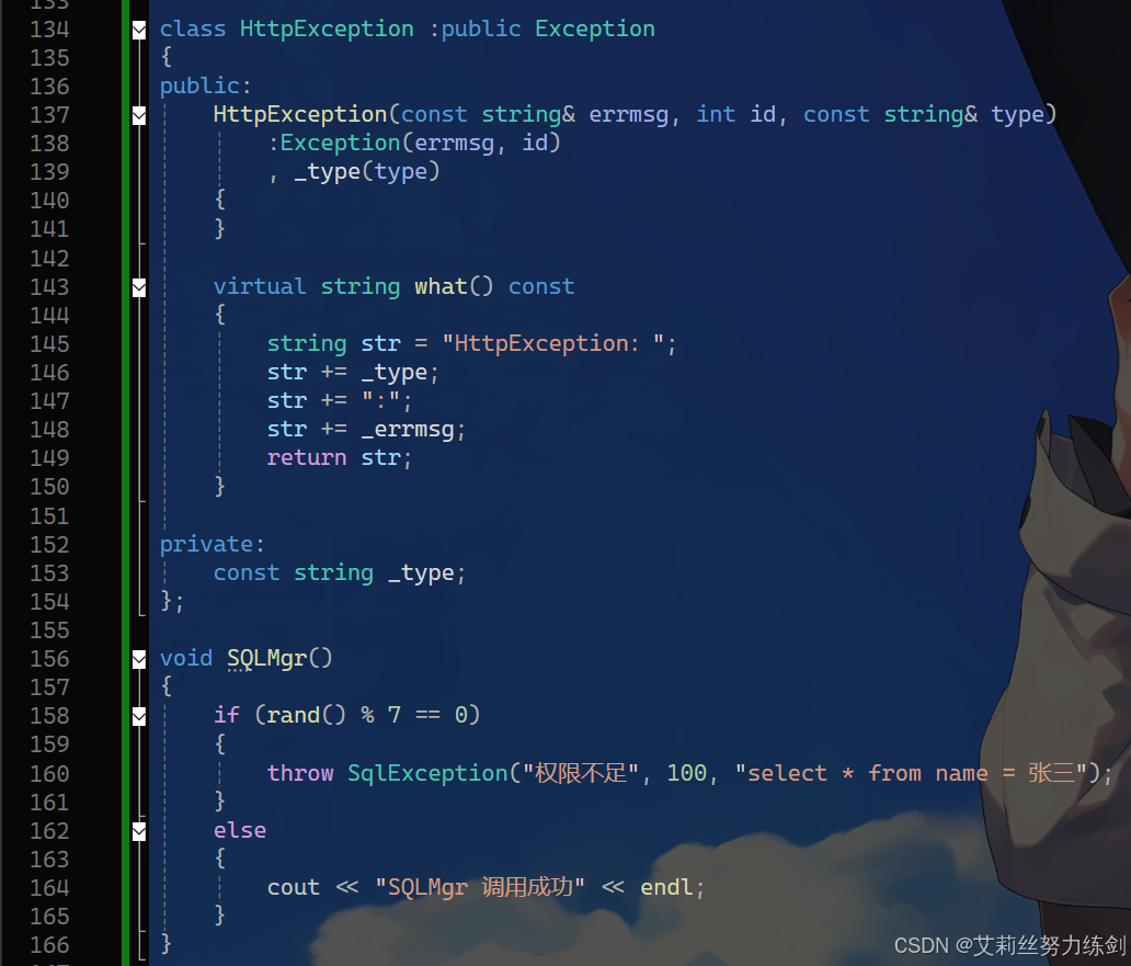 C++标准库也定义了一套自己的一套异常继承体系库,基类是exception,其它的都是它的派生类,所以我们日常写程序,需要在主函数捕获exception即可,要获取异常信息,调用what函数,what是一个虚函数,派生类可以重写。