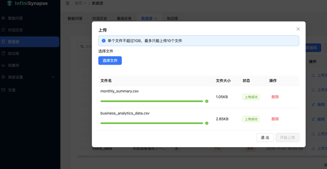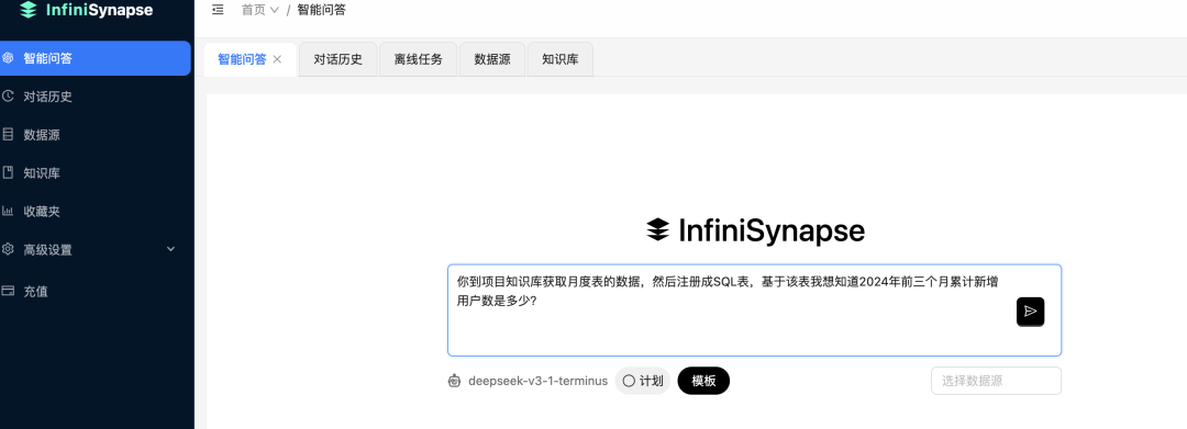 在这里,InfiniSynapse 汇报知识库里的小表格注册成一张表: