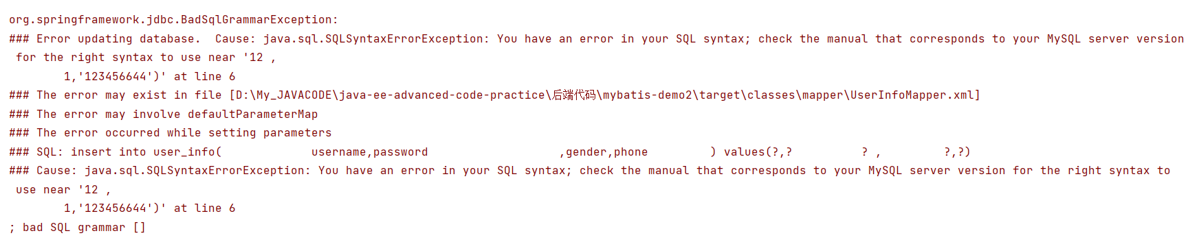 userInfoXMLMapper.insertUser(userInfo);