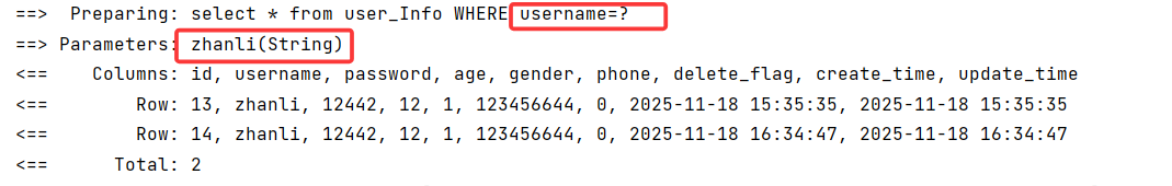 userInfoXMLMapper.selectUser2(userInfo);