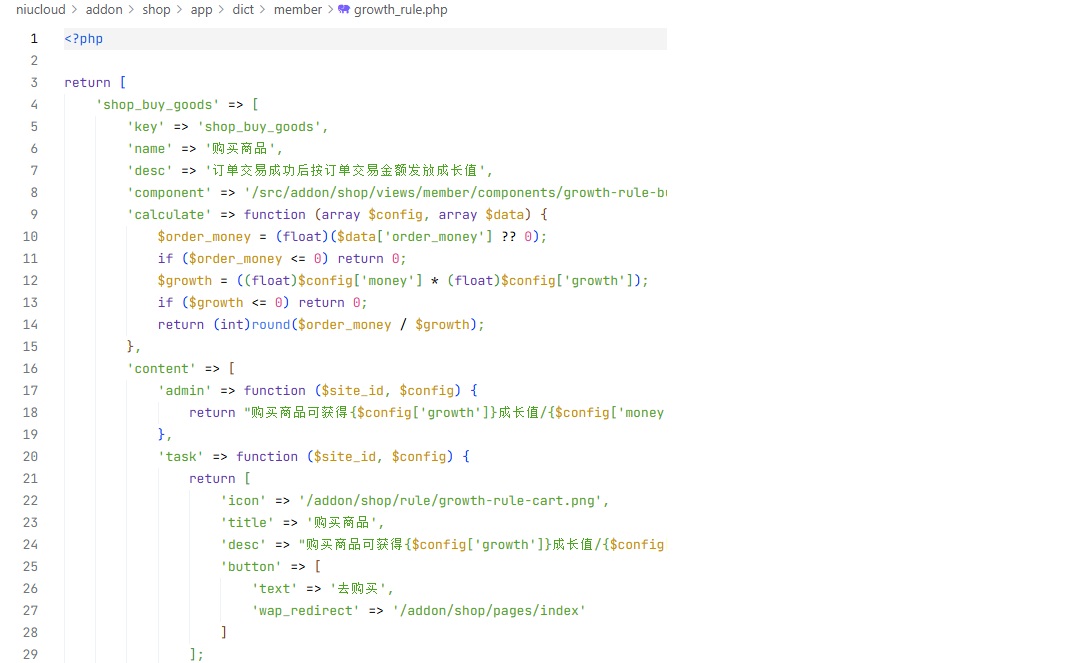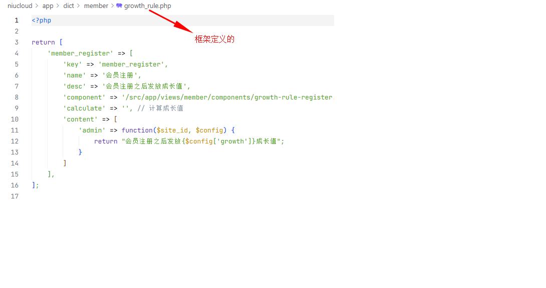 注意:文件名称必须是growth_rule.php,框架会寻找所有插件下的这个文件,进行加载