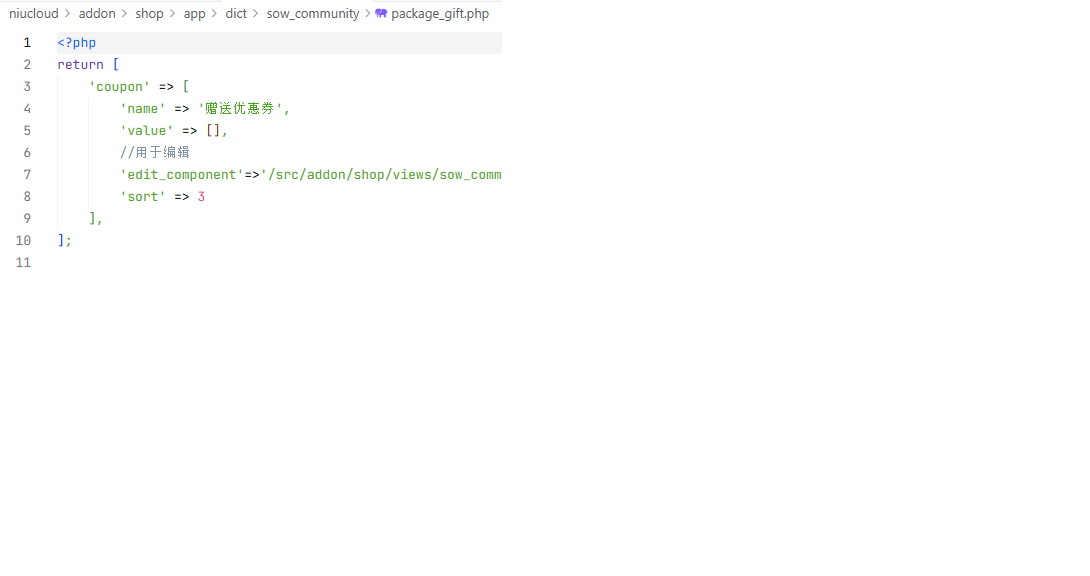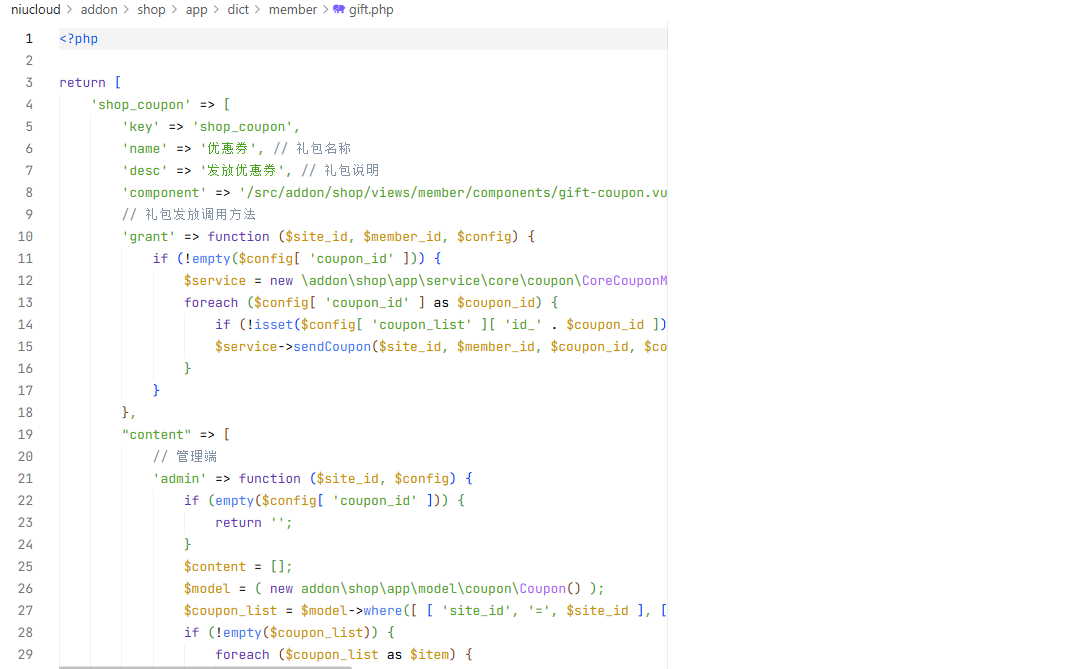 注意:文件名称必须是gift.php,框架会寻找所有插件下的这个文件,进行加载