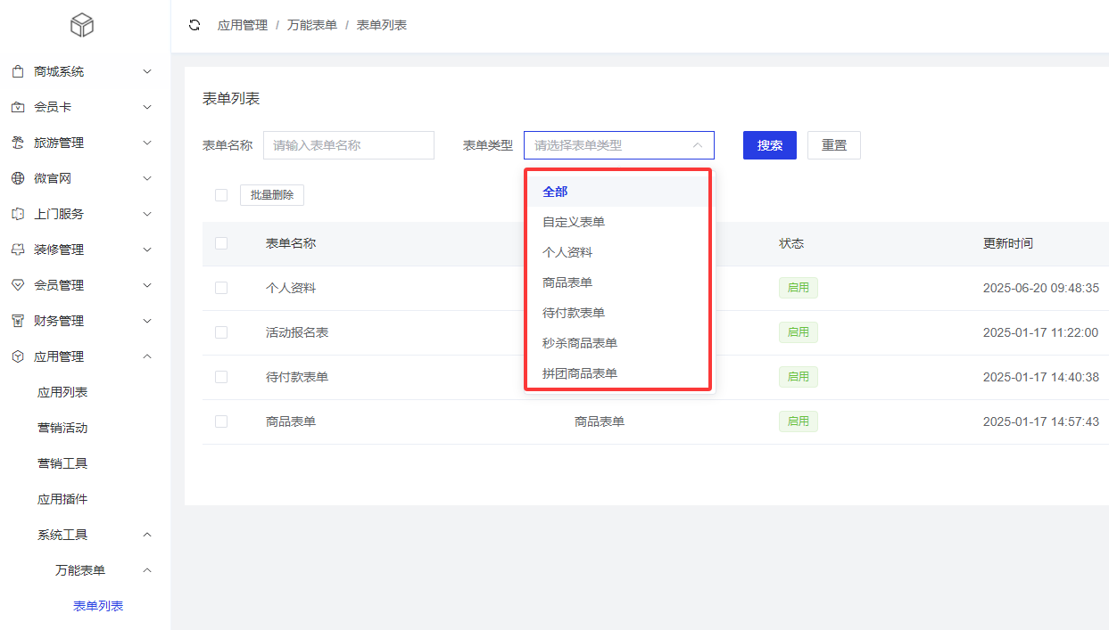 用于万能表单开发:自定义表单组件、万能表单模板数据、万能表单类型等