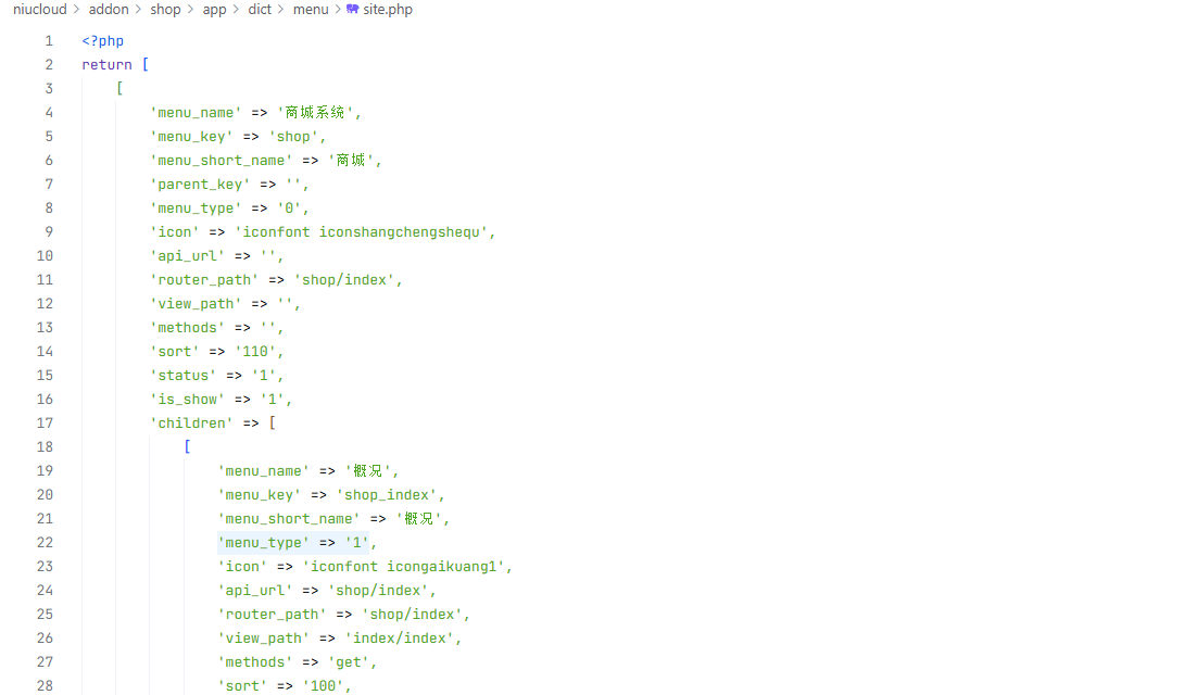 这里只做简单说明,详细请查看菜单开发文档: 菜单开发