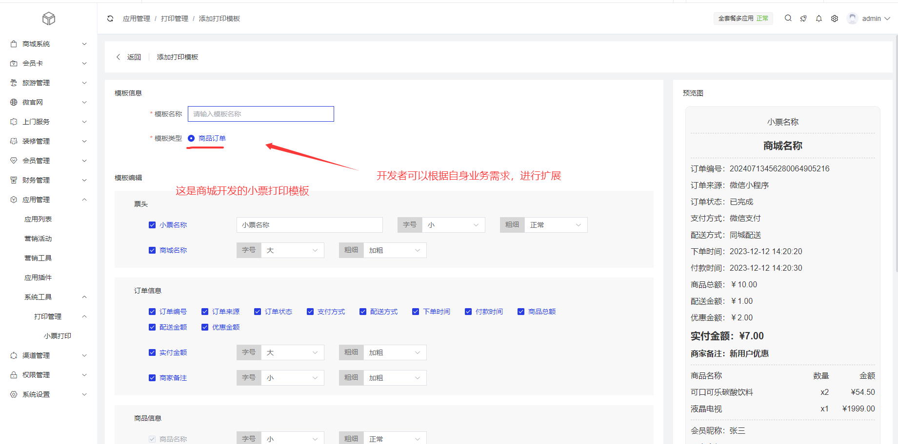 这里只做简单说明,详细请查看小票打印模板开发文档: 小票打印模板开发