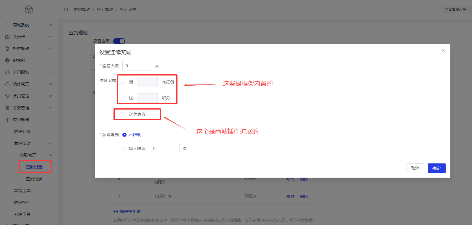 签到活动中可以设置奖励内容,开发者可以根据自身业务需求进行扩展