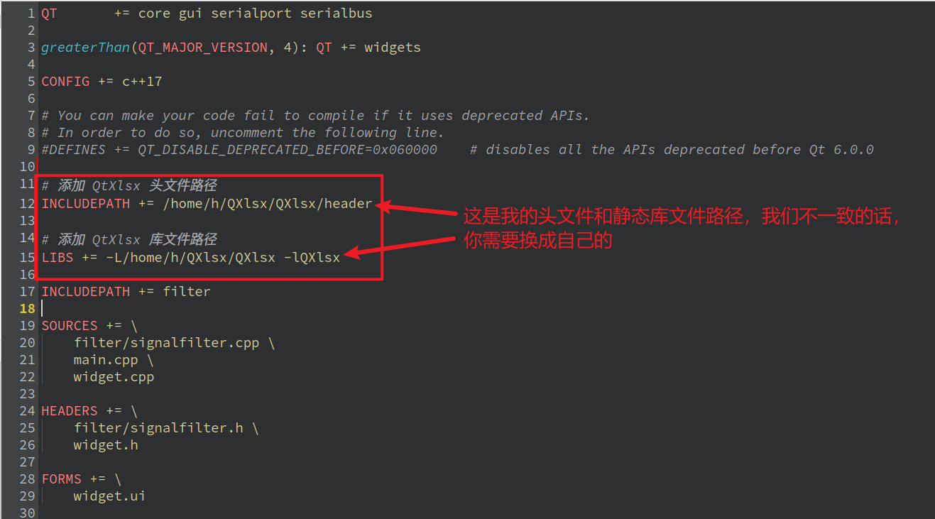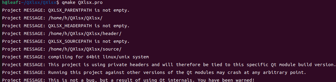 qmake QXlsx.pro