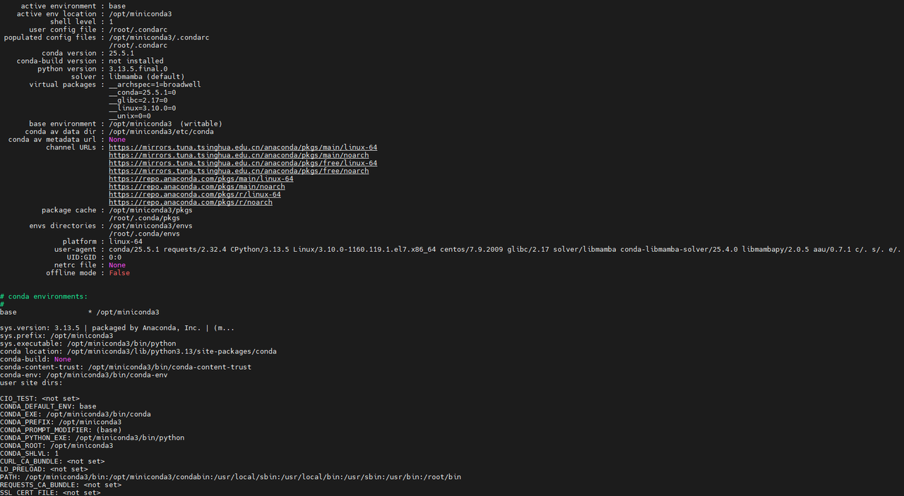 - 解决: 参照第四部分,使用绝对路径的 source /path/to/miniconda/bin/activate 方式来激活,不要依赖系统自带的 conda 命令别名。
