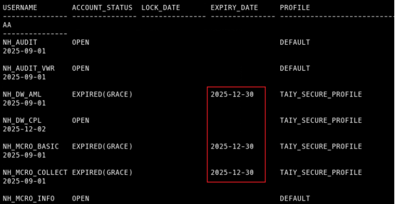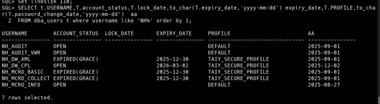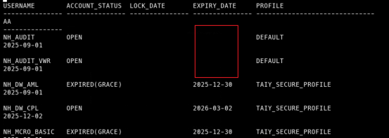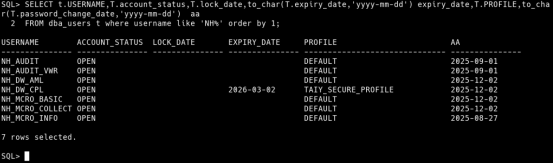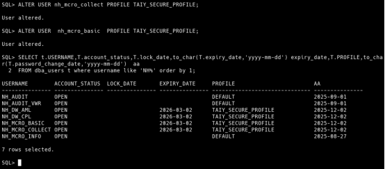 ALTER USER nh_dw_aml PROFILE TAIY_SECURE_PROFILE;