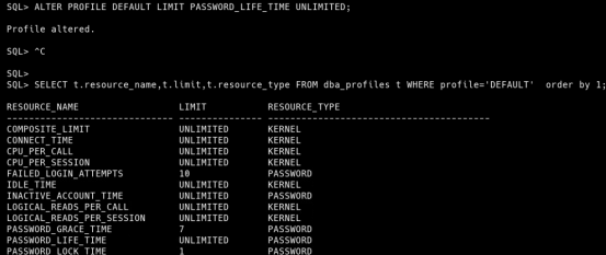 ALTER PROFILE TAIY_SECURE_PROFILE LIMIT PASSWORD_LIFE_TIME UNLIMITED;
