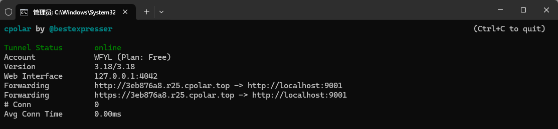 回车后,cpolar 会生成两个公网地址(一个 http、一个 https),复制这个地址就能通过公网访问你本地 80 端口的服务啦~