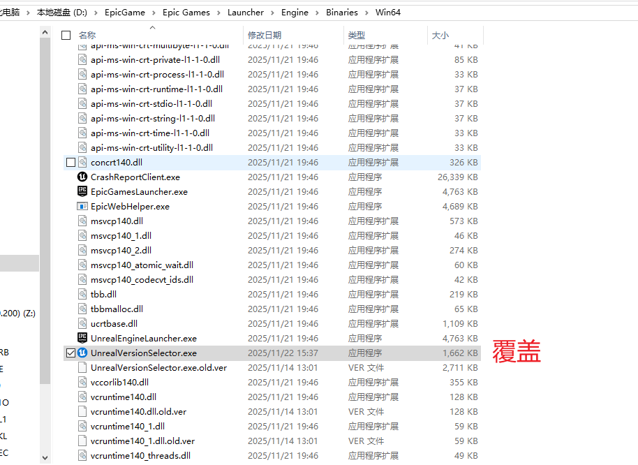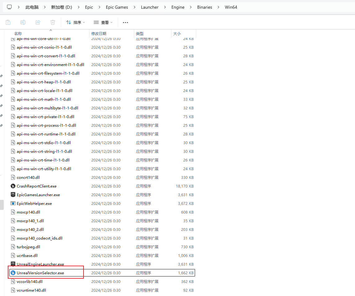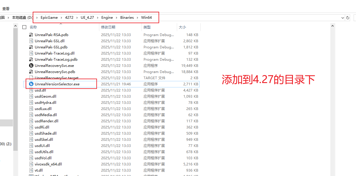 网上试过很多方法都不行,最好的解决方法是从一个可以正常工作的UE4.27引擎,复制它的 UnrealVersionSelector.exe:目录D:\EpicGame\Epic Games\Launcher\Engine\Binaries\Win64
