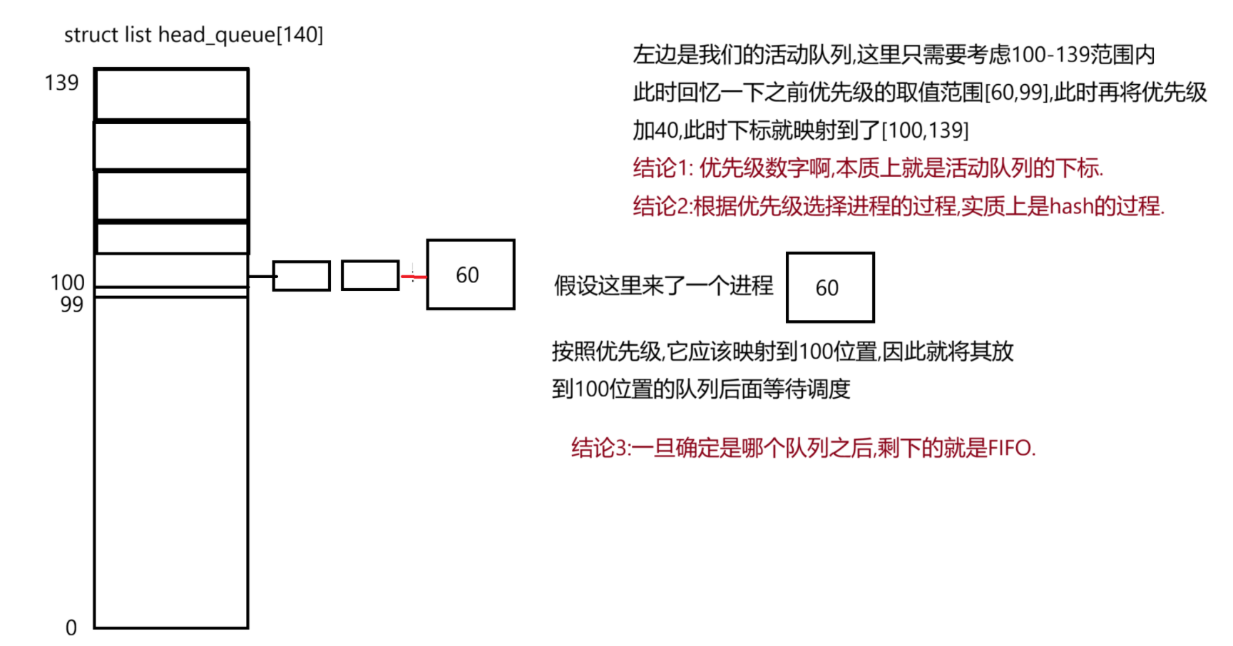 bitmap[5] : ⼀共140个优先级,一共140个进程队列,为了提高查找非空队列的效率,就可以用5*32个比特位表示队列是否为空,这样,便可以大大提高查找效率!
